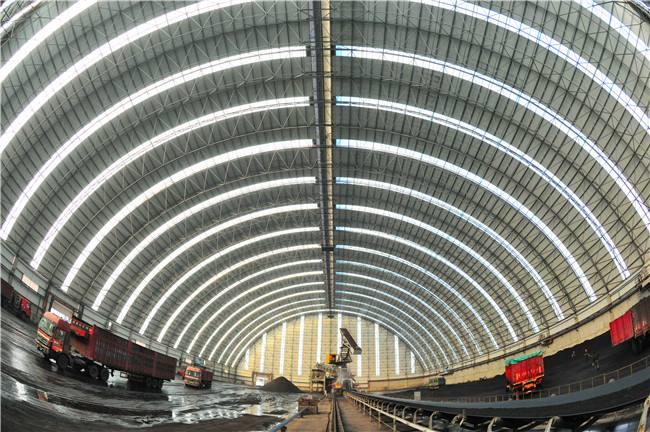 堆场料场封闭式主体结构为新型的钢日照网架结构,维修结构为日照钢结构日照不锈钢板和纤维增强塑料灯具,其外形以日照网架式和平板为主,连接柱日照施工自由,设置喷雾自动喷水系统,从而可以实现棚内所有物料的覆盖,减少物料在运输过程中的损耗,起到防尘的作用,减少工厂关闭后的二氧化硫排放量,50mg/m3颗粒排放量小于10mg/m3,非常适合低能耗。低闭库自动感应反应对库存轮胎进行清洁,确保轮胎不受道路污染;封闭的储存区可从源头控制粉尘污染,控制无序排放。